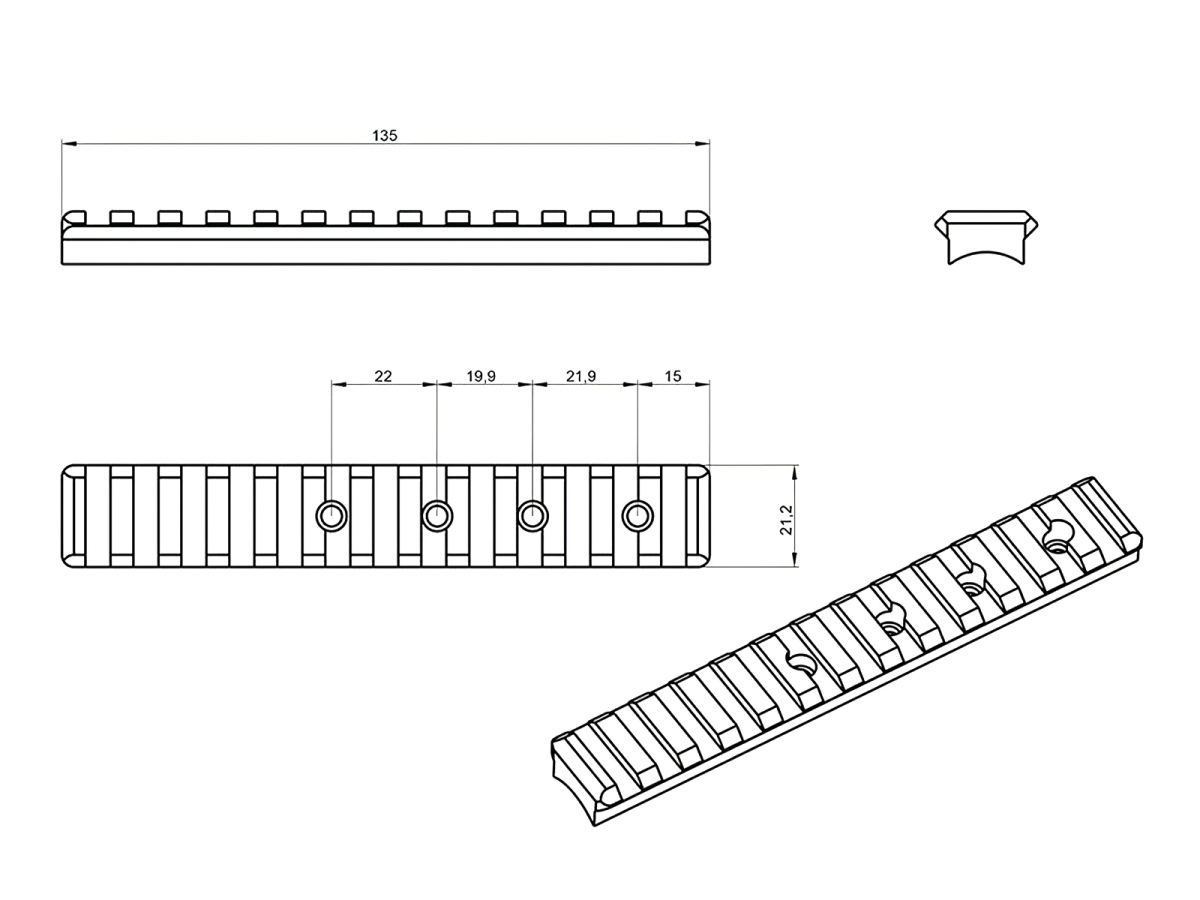 Picatinny lišta JKN Bergara B-13, dĺžka 135mm, plná