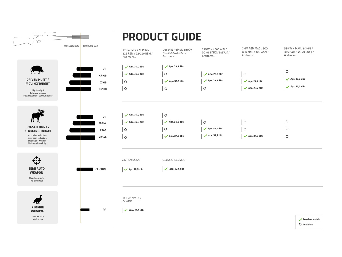 Stalon XE108, extrémne odolný tlmič s teleskopickým dizajnom (over-barrel) a inteligentným systémom vymeniteľnej prednej časti. Oproti verzii X108 má XE108 predĺženú zadnú časť, ktorá ešte viac prekrýva hlaveň, čím dosahuje pozoruhodný útlm -31 dBc (0.308). S krátkym predĺžením hlave a nízkou hmotnosťou je Stalon XE108 jasnou voľbou pre dobre vyváženú zbraň pre väčšie a magnum kalibre.